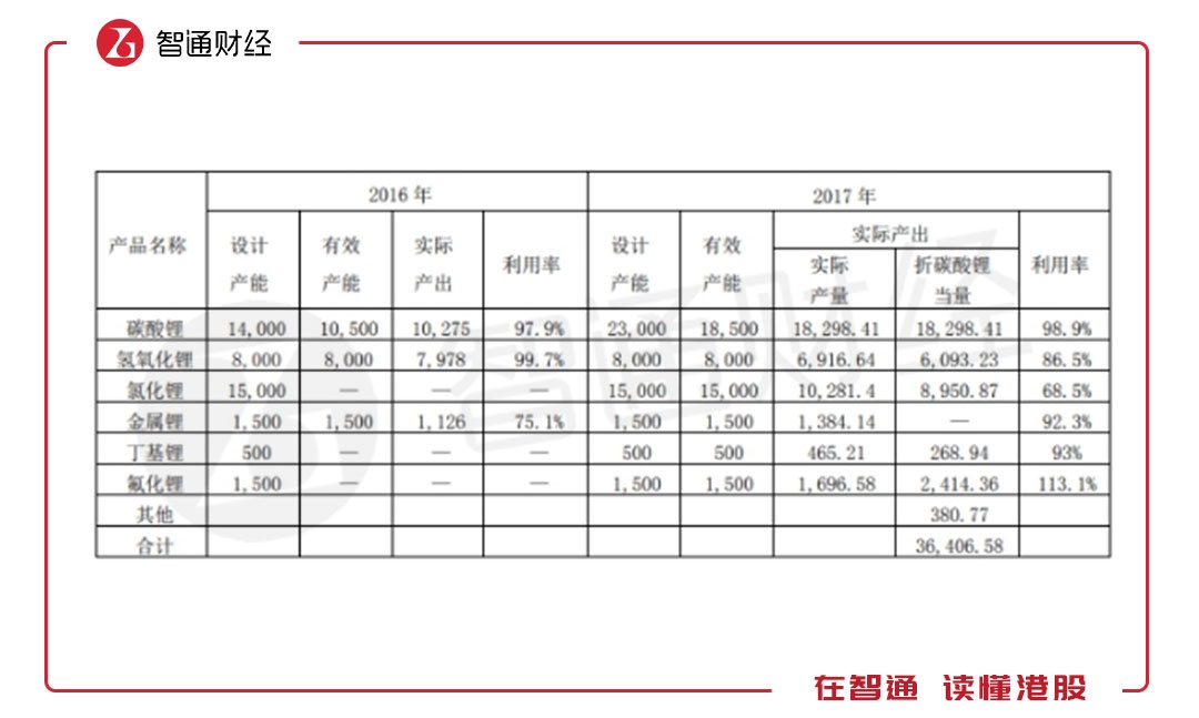 期间,为了满足市场需求,赣锋锂业生产线始终保持较高的产能利用率,在2017年中甚至有生产线利用率超100%,如下表所示: