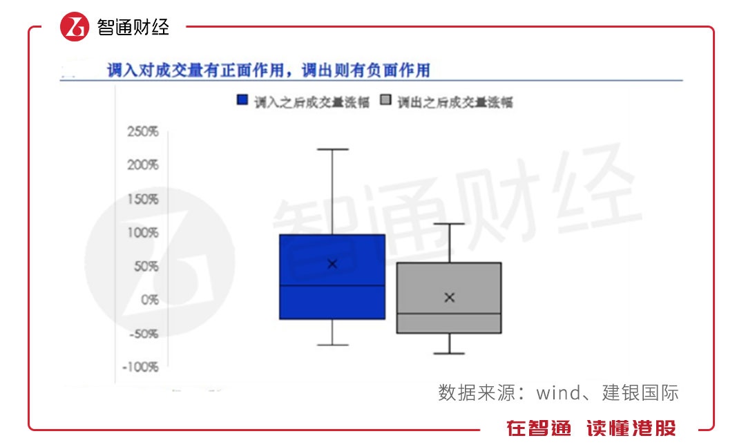 不过,内资通过港股通南下,只能交易纳入港股通的标的。因此,内地资金对港股通标的的影响分外明显,尤其是当港股通标的进行调整的时候,对新进标的的流动性和股价皆有带动。