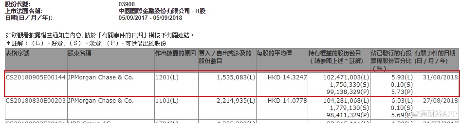 智通财经APP获悉,根据联交所资料显示,摩根大通于8月31日减持中金公司(03908)154万股,每股作价14.32元,总值2199万元,最新持股量降至5.93%。