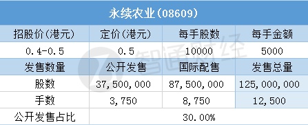 智通财经APP获悉,9月6日,新加坡鲜鸡蛋生产商永续农业(08609)配售结束。配售招股价区间为0.4-0.5港元,最终定价0.5港元,每手5000港元。