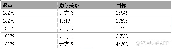 当时在2017年我们以18279点是低点,那我们以18279乘上不同开方根或黄金比率从而预测之后高点位置。