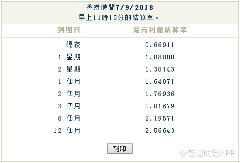 智通财经APP获悉,最新经济数据显示,隔夜港元HIBOR报0.66911%,下降6.0个基点;7天港元HIBOR报1.08000%,下降9.6个基点;14天港元HIBOR报1.30143%,下降11.0个基点;3个月港元HIBOR报1.64071%,下降4.2个基点。