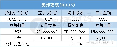 智通财经APP获悉,9月7日,澳门结构工程及装修工程承建商奥邦建筑(01615)配售结束。配售招股价区间为0.52-0.78港元,最终定价0.67港元,每手3350港元。