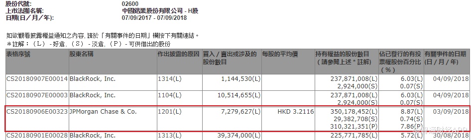 智通财经APP获悉,根据联交所资料显示,摩根大通于9月3日减持中国铝业(02600)728万股,每股作价3.2元,总值2338万元,最新持股量降至8.87%。