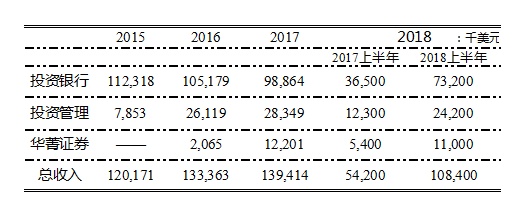 从上表可看出,2018年上半年,华兴资本三大业务板块营收同比均出现约100%的大幅增长,特别是投资管理业务板块,营收规模已从2015年的全年不足千万美元,飙升至2018年上半年的超2420万美元,三年多时间增长近10倍之巨。