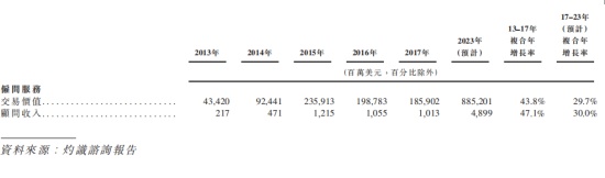 顾问服务——新经济公司从初生到成长,除了需要持续不断的融资“输血”外,还有着比传统公司更旺盛的并购需求,因为并购是新经济公司建立其生态圈的主要途径。根据灼识咨询的研究,过去5年,新经济企业的顾问服务市场持续方兴,预计未来5年复合增长率将始终维持在30%以上。