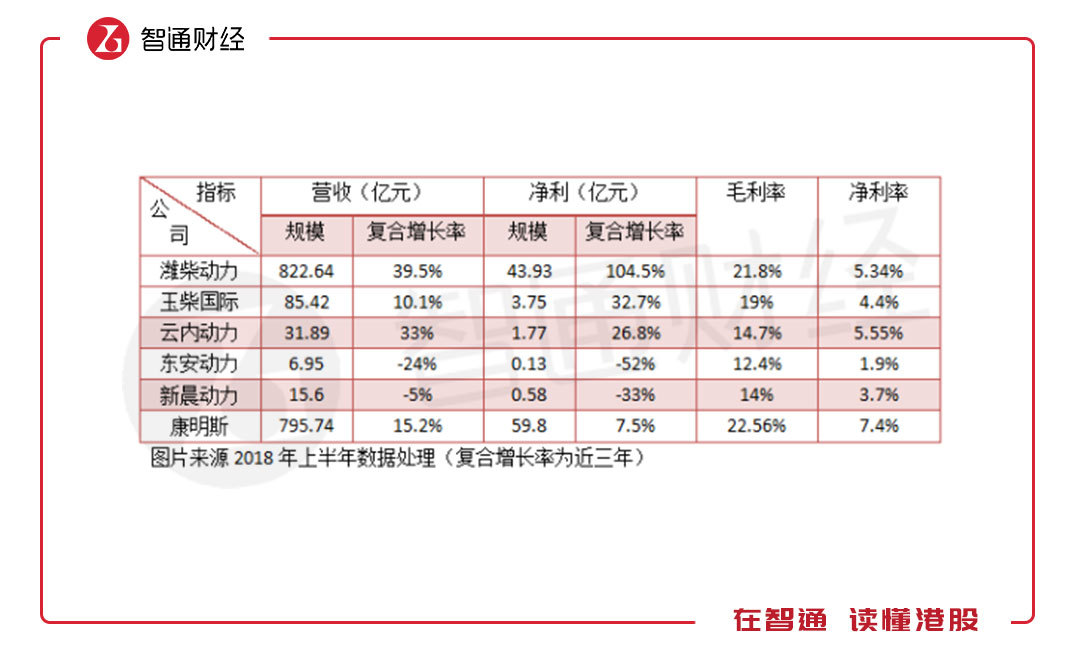 国内的发动机供应市场高度集中,前十大供应占据了超过7成的份额,主要为柴油机供应,适用于商用车,龙头潍柴动力(02338)市场份额最大。汽油机适用于乘用车,由于主要为内供,市场数据较少。与国际龙头康明斯相比,上半年国内的柴油机企业赚钱能力还是较低的。