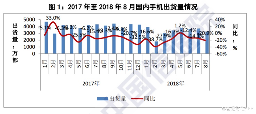 智通财经APP获悉,中国信息通信研究院发布了一份手机出货量报告,该报告主要针对国内手机市场表现统计。数据显示,8月份国内手机出货量同比大幅度下降,今年整体的手机市场出货量不容乐观。