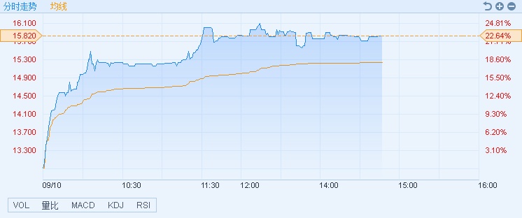 智通财经APP获悉,中国投资基金公司(00612)今天正式获纳入恒生综合指数及港股通指数,今日股价飙升,截至14时43分,涨22.64%,报价15.82港元,成交额3515.1万。