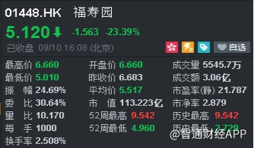 智通财经APP注意到,征求意见稿出台之后,港股殡仪服务板块个股承受较大压力。其中福寿园(01448)股价在9月10日全天累计下跌23.39%,报收于5.12港元,创近一年来新低,成交金额达到3.06亿港元,较前一个交易日放大近5倍。