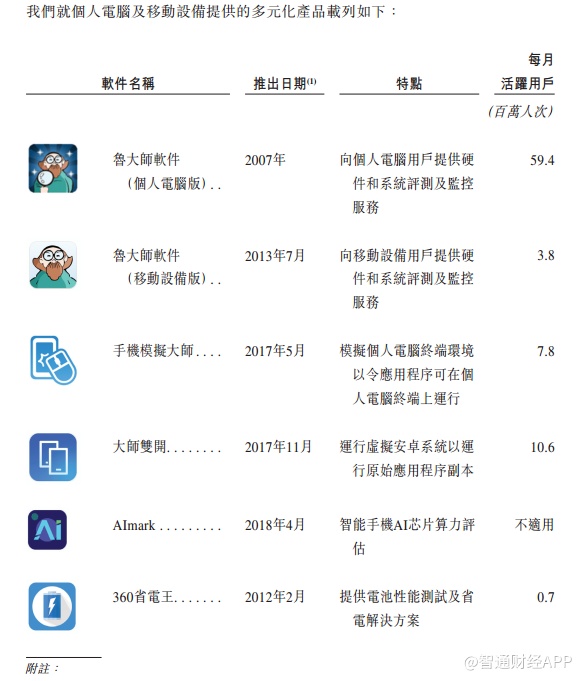 鲁大师开发一系列个人电脑及手机设备实用软件,并免费提供予用户以换取线上流量。2018年6月,公司产品的月活用户约9750万人次,包括实用软件的月活用户8230万人次及游戏库的月活用户1520万人次。
