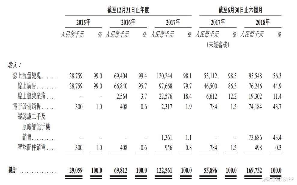目前,公司透过线上广告及线上游戏业务变现,以及透过电子设备销售实现收入。其中,线上广告服务提供三类服务,包括:(1)主页导航服务,(2)迷你页弹窗服务,及(3)条幅广告服务。通常按每次操作收费方式向客户收费,由此赚取的收入构成总收入的主要部分。
