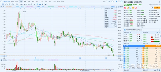 智通财经APP观察到,超威动力(00951)从8月中旬迎来一周的上涨之后,又进入持续下跌模式。9月10日,截至收盘,该股跌4.00%,报价3.36港元,成交额为307万港元。不仅股价下降至新低,成交量也持续低迷。2018年以来,与2月份最高股价5.786港元相比,跌幅达41.9%。