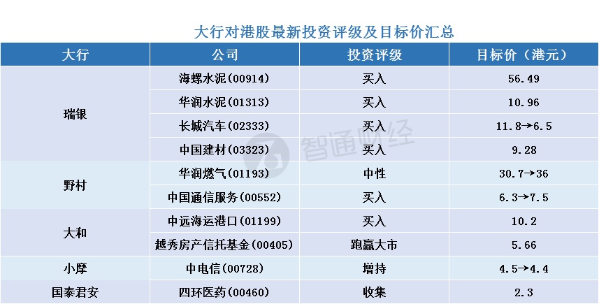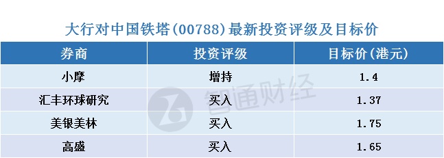 一、大行对中国铁塔(00788)最新投资评级及目标价