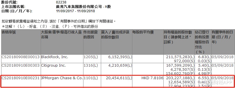 智通财经APP获悉,根据联交所资料显示,摩根大通于上周三(5日)增持广汽集团(02238)2045万股,每股作价7.8106港元(单位下同),总值1.6亿元,最新持股量增至6.55%。