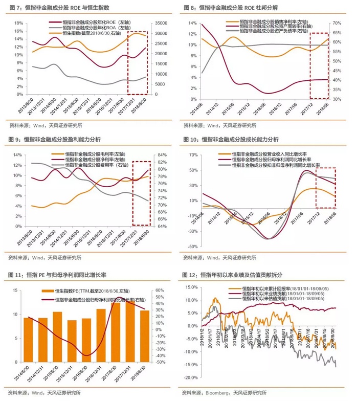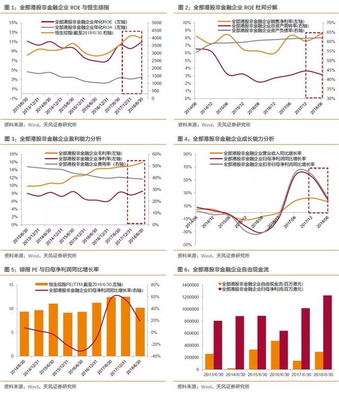 港股非金融企业中报年化ROE达11.04%,逼近近五年高点。截至2018年9月5日,已披露中报的全部港股非金融企业通过整体法测算的年化ROE为11.04%,达到2013年12月以来最高值,接近近五年来最高点11.12%。