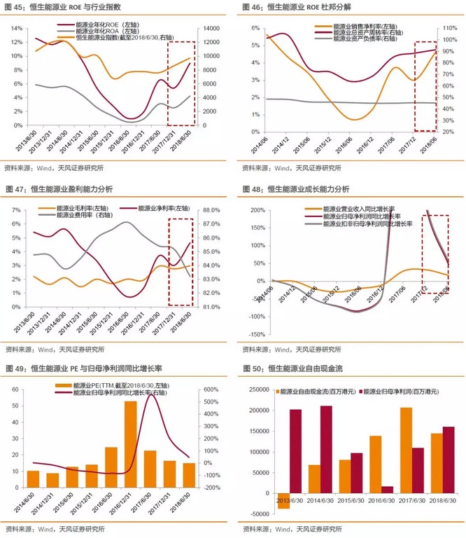 港股非金融企业中报年化ROE达11.04%,逼近近五年高点。截至2018年9月5日,已披露中报的全部港股非金融企业通过整体法测算的年化ROE为11.04%,达到2013年12月以来最高值,接近近五年来最高点11.12%。其中,16年、17年中报年化ROE分别为6.91%、10.25%,连续3年呈上升状态。结合ROA来看,18年港股非金融企业中报年化ROA为3.57%,高于17年中报0.17个百分点,较16年中报相比同样呈上升趋势。