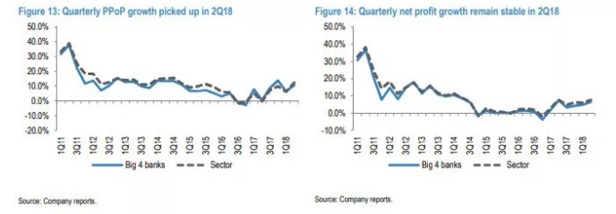智通财经APP获悉,近日J.P. Morgan发布中国银行业上半年业绩评论。上半年,中国银行业的盈利增长超过了小摩对收入,净利润和有效税率的预期。金融去杠杆化继续取得进展,小银行的影子资产有所缩减。