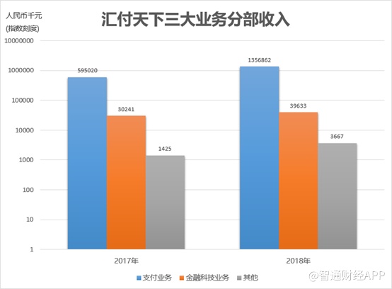 而从汇付天下三大业务——支付业务、金融科技业务及其他业务来看,其分部收入也都录得较大幅度的增长,尤其是主营的支付业务,同比增幅高达128%: