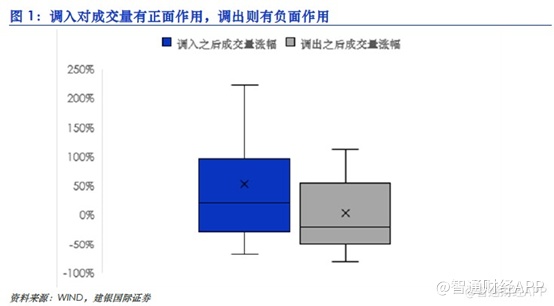 根据建银国际发布的研报数据,以深港通标的为例(包括了小型股,更加典型),自其2016年底以来,共经历了三次主要的常规调整,包括2017-3-6,2017-9-4及2018-3-5,在排除因更改股票代码,新上市股票,以及调入之后又被调出的因素干扰之后,可以看到入选港股通之后,标的平均成交量提了51.6%,中值提高了20.9%:
