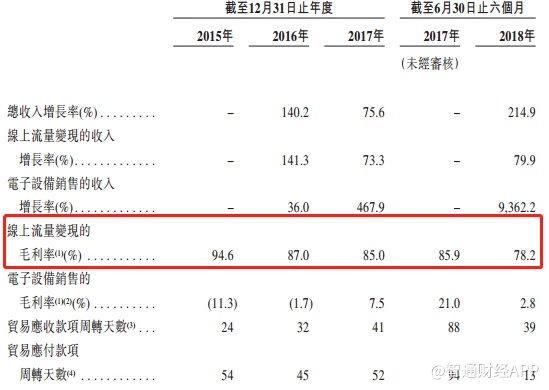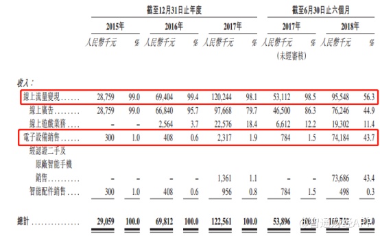 从公司分部业务的业绩情况来看,公司目前的变现途径分为两大类,一个是线上流量变现,另一个则是电子设备销售变现。并且从收入占比情况来看,线上流量变现收入为公司的核心收入,在2017年的收入占比达到了98.1%。