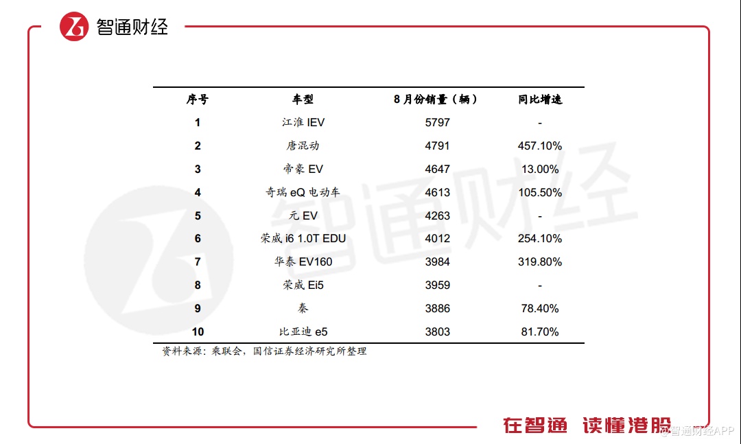 表1列出的新能源车代表车型最近销售量也展示出强劲的势头。