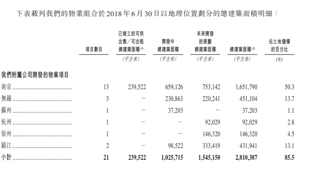 业务方面,截止2018年6月30日,该公司拥有位于7座城市的28个物业项目的建筑总面积达大约328.69万平方米;其附属公司所开发物业项目建筑总面积约281.03万平方米;在其与合营企业及联营企业开发的物业项目中,该公司应占建筑面积分别达到约21.71万平方米和大约25.94万平方米;以及其他已竣工投资物业1 .66万平方米、开发中的投资物业6.54万平方米以及持有的未来投资物业5.47万平方米。