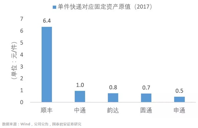 1. 资产:顺丰单件快递的固定资产投入是电商快递企业的6倍以上。此外,品牌作为一种无形资产,在会计报表上难以体现,但商务快递的品牌资产的形成更为漫长和困难,是获客与高定价的基础。