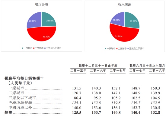 6、根据招股书提供的数据,二线城市餐厅数量占总数的48.42%,占总收入的比重为51.99%,说明二线城市的店铺盈利能力最强。从顾客平均消费水平可以看到:一线城市和二线城市消费能力差别很小,但是三线及以下城市跟二线城市比差别就很大了。而一线城市由于生活节奏快,愿意等台的客人没有二线城市多,招股书显示:二线城市的翻台率遥遥领先,同时一线城市人力成本、店面租金较高,海底捞定位的是中高端餐饮,三线及以下城市经济不够发达,消费能力跟不上。7分