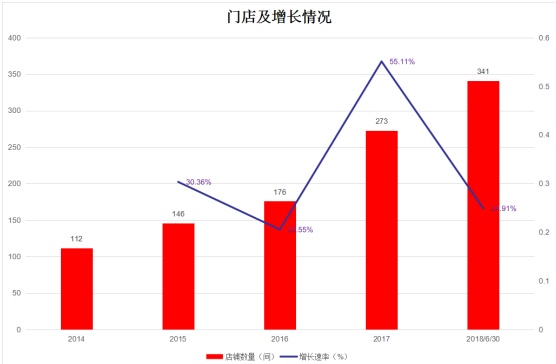 2、发行市盈率有点高,虽然公司收入规模增长很快,2018年上半年,公司收入和净利润同比增长54.37%和17%,扩张太快,净利润有点跟不上。跟呷哺呷哺比一下,市盈率太高了。5分;