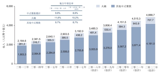 4、根据招股书公布的数据,在传统的中式餐饮中,火锅这一块增长略高于其他类别,2位数的增长速度确实是非常快的;7.5分