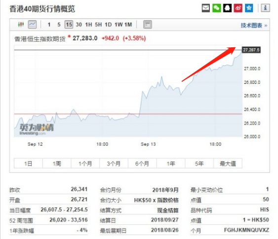 恒指夜期收盘(9.13)︱恒指夜期收报26723点,高水378点