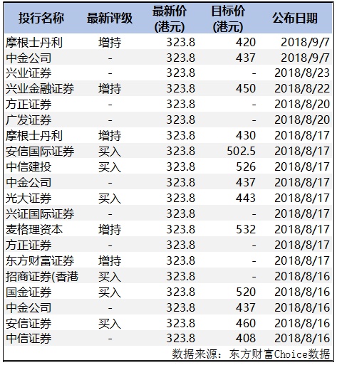 除此以外,虽然腾讯股价今年以来一路下行,但机构评级始终维持高于腾讯目前股价的表现,与13日腾讯最新股价对比,9月以来,摩根士丹利与中金公司给出的目标价均高出30%左右,摩根士丹利的最新评级为增持。