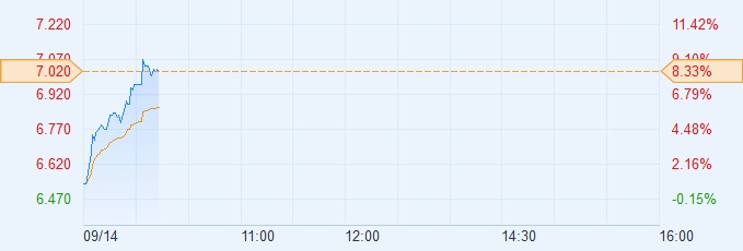 智通财经APP获悉,5G商用加快,中国通信服务(00552)近期持续上涨,此外,中国通信服务2018年上半年收入增速为近六年新高,公司经营收入同比增长13.2%至507.92亿元人民币。今日中国通信服务再创历史新高。截至10:09,涨8.18%,报7.01港元,成交额1.31亿港元。