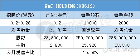 智通财经APP获悉,9月14日,建筑工程顾问WAC HOLDING(08619)配售结束。配售招股价区间为0.2-0.28港元,最终定价0.2港元,每手2000港元。