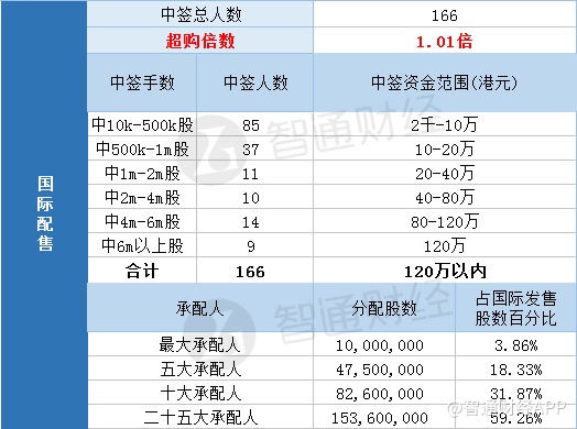 国际配售中签总人数166,超购倍数1.01倍。