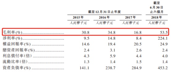 智通财经APP观察到,实际上银城近几年的毛利率并不太稳定。在2015-2016年维持了30%以上毛利率后,2017年突然下降至16.8%,并在今年上半年大幅提高至远高于行业平均水平的53.5%。