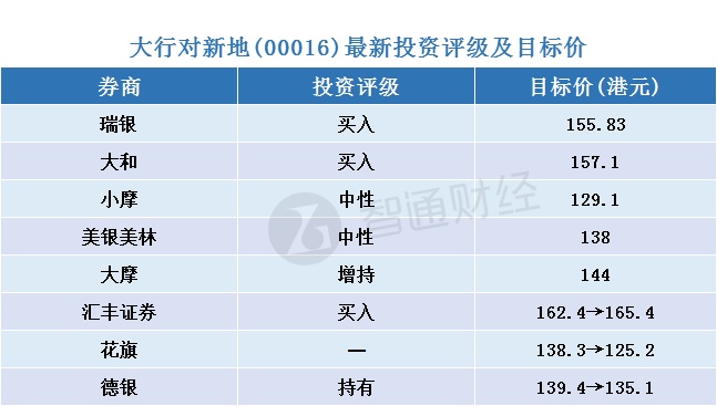 一、大行对新地(00016)最新投资评级及目标价