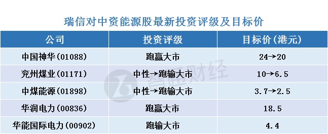 三、瑞信对中资能源股最新投资评级及目标价