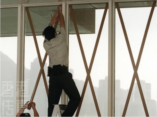 香港天文台专门发表教程,向市民解释如何用胶纸粘贴玻璃,防止玻璃被大风吹裂。