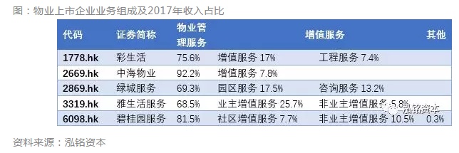 随着我国城镇化水平不断提高、人均可支配收入的提升以及顺应人民群众向往美好生活的时代主题,物业服务的需求愈来愈受到重视,体现在商业模式上对应为物业服务公司的两大块业务:物业管理服务和增值服务。下表中整理了部分上市企业年报中对自身业务的划分方式,其中可见物业管理服务为基础、增值服务的空间还很大。