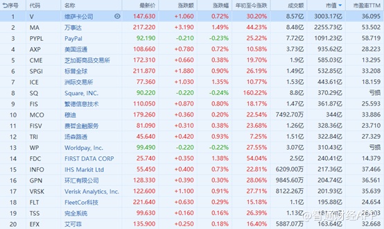 尽管由于市场限制,有些金融科技巨头没有被纳入其中,且近两年新上市的Fintech企业也不在其中,但这49家公司作为金融科技企业代表,依然值得关注,过去两期的主角PayPal和Square也榜上有名。