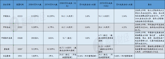 有意思的是,纵使业内员工成本开支比重较大,但整体上这些企业的员工人数并没有出现大面积减少的迹象。诸如友邦保险(01299)、招商银行、国泰君安、华泰证券(06886)等员工人数还出现不同程度的增长。