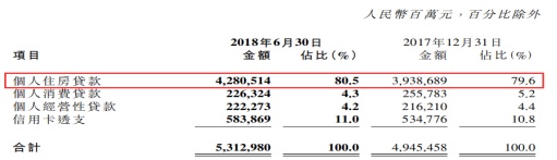 除此之外,智通财经APP还发现一个有意思的事情。工商银行(01398)披露的2018年中期业绩报告显示,该行上半年个人贷款总额达到5.31万亿元,其中个人住房贷款为4.28万亿元,占比总额的80.5%,同比提升0.9个百分点。