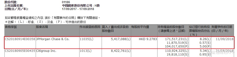智通财经APP获悉,根据联交所资料显示,摩根大通于9月11日增持中国铁建(01186)542万股,每股作价9.28元,总值5026万元,最新持股量增至8.26%。