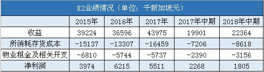 不过,K2的发展似乎已进入瓶颈。从其招股书提供的数据可以看出,K2的发展脚步从2017年开始放缓,2018年继续放缓。其收益虽然在持续增长,但净利润却在下滑,今年上半年同比下滑25.65%。拖累K2净利润下滑的是所消耗存货成本及物业租金两大开支。
