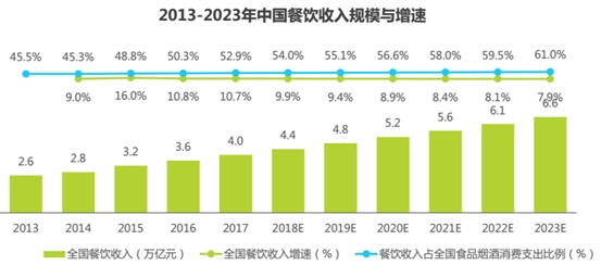 不过,并不只有新加坡的餐饮市场增速放缓,中国的餐饮市场也在面临这一状况。据艾瑞咨询发布的《中国新餐饮消费行为趋势研究报告》数据来看,2013-2023年全国餐饮收入增速将由最高值16.0%降至7.9%。