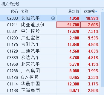 大和报告中称,认为投资者主要关注汽车业2018年第4季至2019年的销售趋势,该行预计行业将逐步复苏。但如果行业形势继续恶化,该行认为受到政府支持的可能性很大。该行看到内车行业基本面强劲,且不受贸易摩擦和进口关税削减影响的公司有买入机会。该行推荐吉利(00175)和华晨(01114),因为2018年二者可能实现强劲的盈利增长。