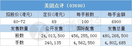 智通财经APP获悉,9月19日,美团点评(03690)配售结束。配售招股价区间为60-72港元,最终定价69港元,每手6900港元。