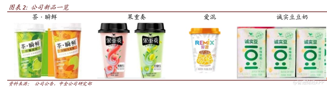 3)新品布局,逐步放量可期。公司 17 年推出泰〃魔性柠檬茶、气泡果汁饮料打气,其中打气与周黑鸭和江小白寻求创新营销合作;今年起公司将战略性布局新的子品类冷藏饮品,包括冷藏茶(茶〃瞬鲜)、冷藏果汁(果重奏)和冷藏奶茶(爱混),并首次通过豆奶产品诚实豆进入乳制品市场,我们看好公司更加稳健的新品策略,预计未来随新品培育和逐步放量,有望持续推动收入增长。